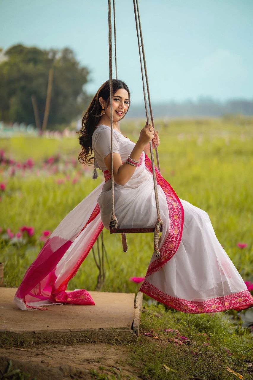 শাড়ির পুরো অংশে সূক্ষ্ম সুতার কাজ করা, যা আপনার লুকে আনবে অনন্যতা।