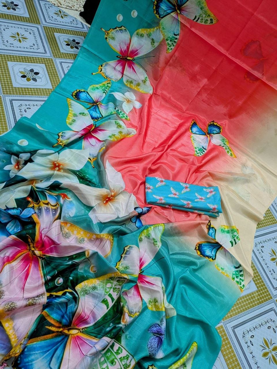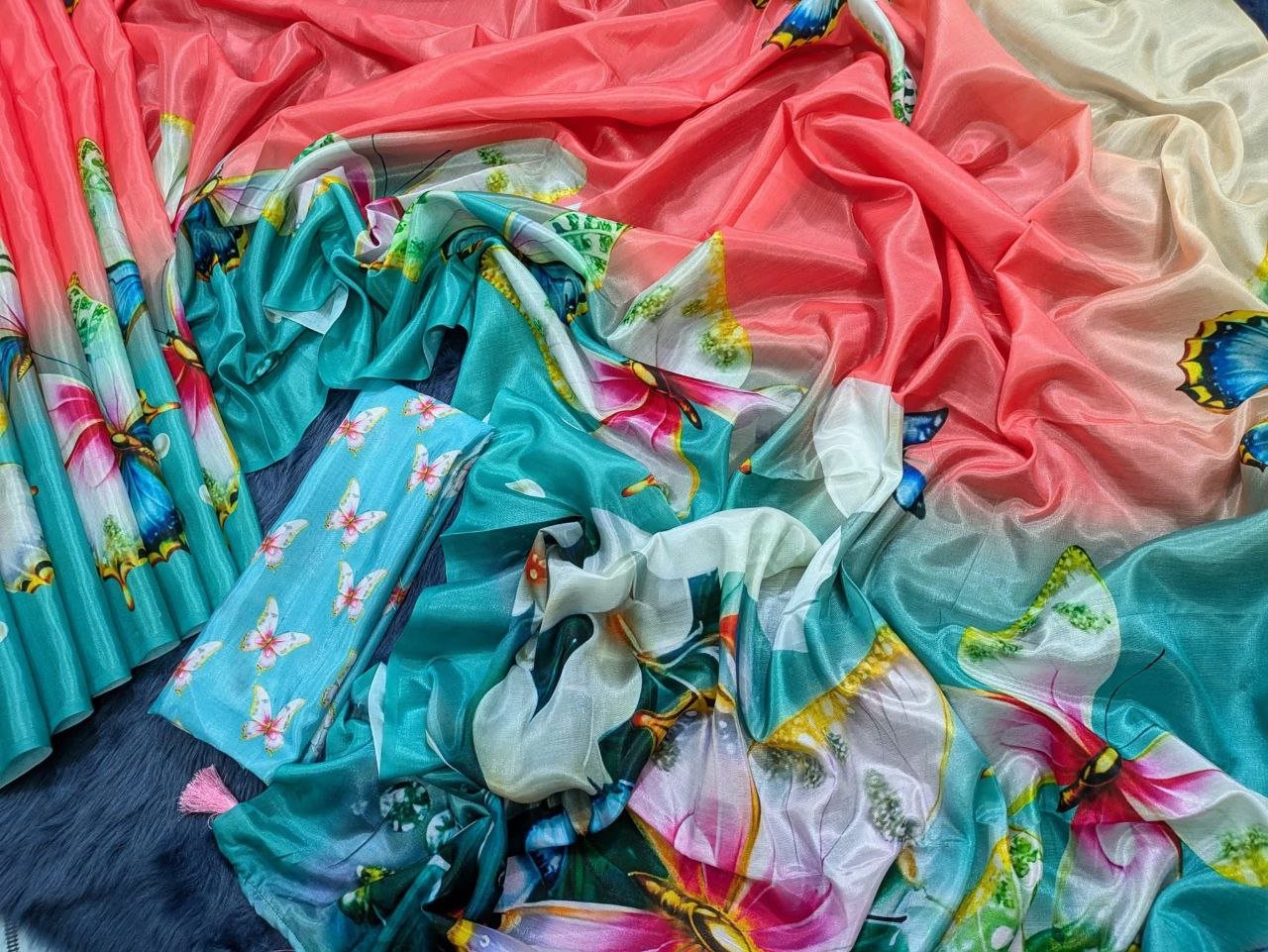সফট সিল্ক ডিজিটাল প্রিন্ট শাড়ি + ম্যাচিং ব্লাউজ পিচ (code-03)